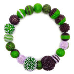 This necklace is characterized by spherical, two-tone Murano glass beads.