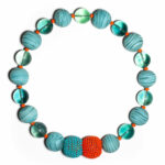 This necklace type is characterized by several special features and unique characteristics: The Kettenmacherin plays with a larger selection of materials. The pink rollings are made of opal and quartz. Serpentine and chrysocolla gemstone rollings are also part of the wide range of materials. Last but not least, the beads of the magnetic clasp are beaded with glass beads. It is not only the material combination that makes this necklace special, the color design is also unique: The color transition of the necklace resembles a flow of color that changes from cream to pink to green. After the last, almost turquoise chain element of a group, the flowing transition stops and the cream color begins again. Thus, despite the contrasting colors, the necklace creates a soft transitions between the color segments. The shape of the necklace is also aesthetically sophisticated: the delicate and straightforward appearance is in contrast to the round beaded beads of the magnetic clasp, creating an interesting tension in the design.